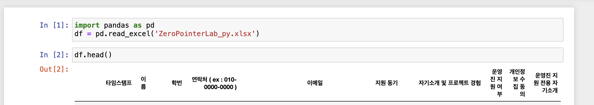 ai 짬에서 나온 pandas를 import해주고 head를 찍어보면 잘 나오는 것을 확인할 수 있다.