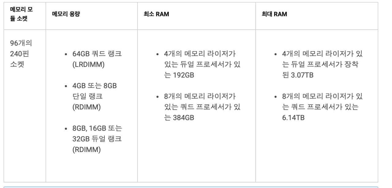 4개의 cpu를 쓸 생각이면, 384gb 메모리를 준비하라는 데이터시트를 보고 생각에 잠겼다.