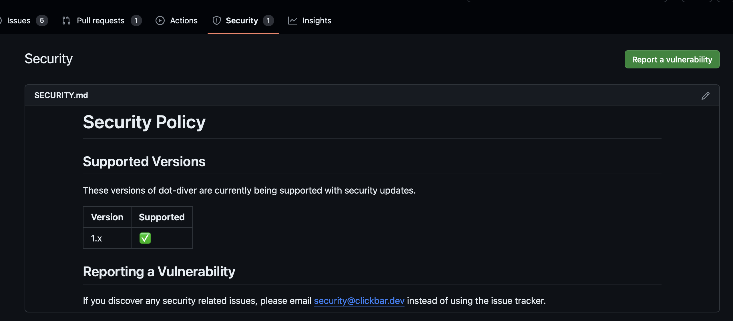 아래와 같이 보인다면, 이미 security.md가 활성화 된 것이다.