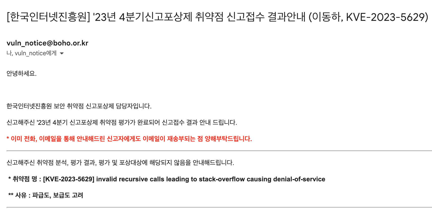 kisa의 경우 bounty 규모가 크진 않지만, KVE라는 식별자를 도입한 기관이다. kisa에서는 아직 바운티를 받아보진 못했지만 처리 기간이 분기 단위라 매우 길다는 것을 확인할 수 있었다.